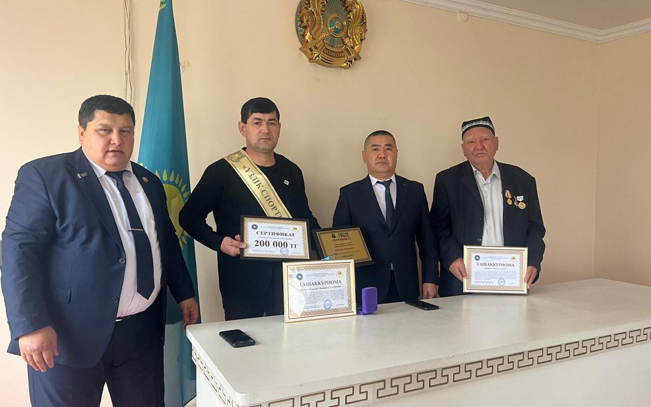 Янги раиснинг ишларида муваффақиятлар тилаб, халқимиз ижтимоий хаётида мухим бурилиш ясашига ишончимиз комил. Бу йиғилишда бир қанча фаолларимиз муносиб рағбатлантирилди. Хусусан, қишлоқда "Китобсеварлар клуби"ни ташкил этган фидойи устоз Музаффар ака Мараимов ва 2025 йил сархисобига кура, йилнинг "Энг илғор спорт устози" атоғига ноил бўлган таниқли мураббий Илхом Эрметов хамда фахрий оқсоқолимиз Мирзахон акага Қозоғистон ўзбеклари саркори Абдулла Исматуллаевнинг ташаккурномаси тақдим этилди. Мураббий Илхом Эрметовнинг спорт сохасида қулга киритган ютуқлари юқори бахоланиб, республика ўзбеклари саркори А.Исматуллаев томонидан 200 минг тенге пул мукофоти сертификатини унинг ўринбосари Саид Хайруллох тантанали равишда топширди. Тадбир интихосида янги раис Саъдулла ака Абдуллаев бир қатор фахрийларимизга уз совғаларини тақдим этди.